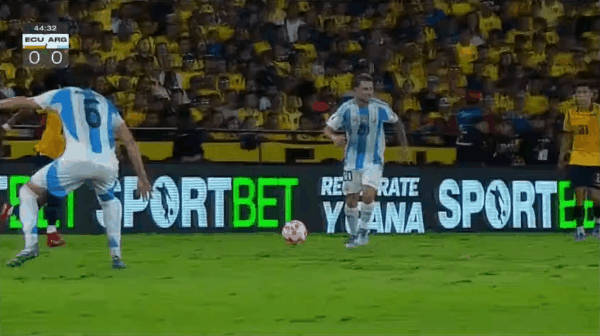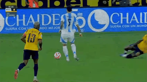 45+13’普雷西亚多被撞倒获点,瓦伦西亚命中,厄瓜多尔1-0阿根廷