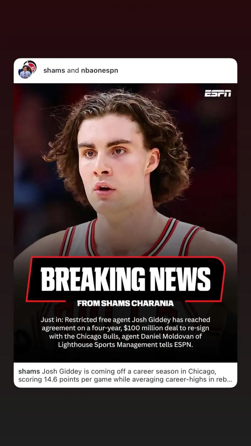 虎扑09月10日讯 乔克-兰代尔更新ins,晒出有关吉迪与公牛达成续约的动态。
